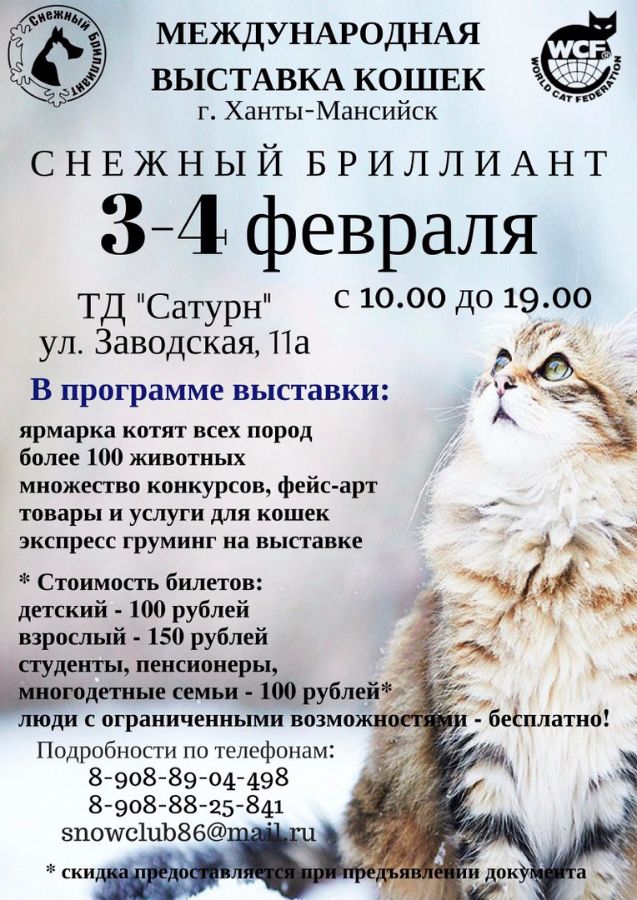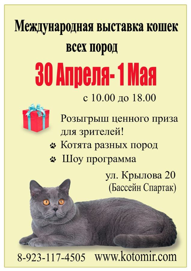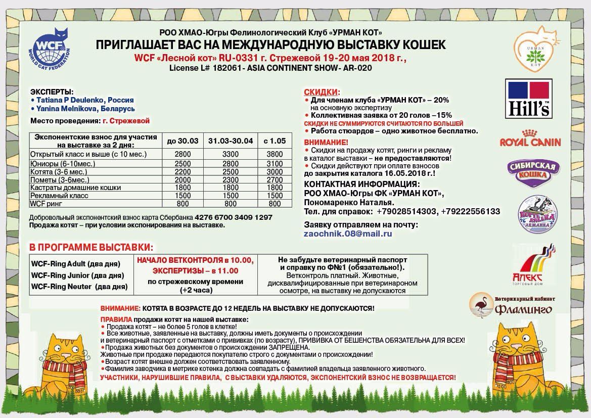 МЕЖДУНАРОДНАЯ ШОУ-ВЫСТАВКА КОШЕК ВСЕХ ПОРОД 30 АПРЕЛЯ — 1 МАЯ «СИБИРИАДА 2018»