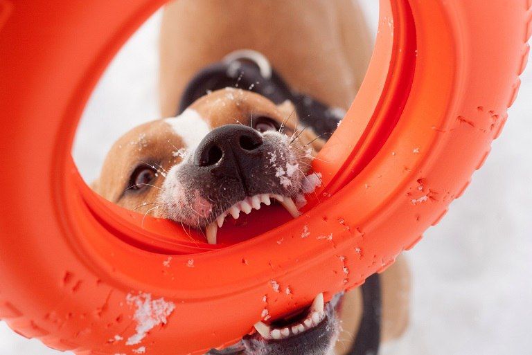 - На тренировках со снарядом у собак развивается упорство, выносливость, работоспособность
