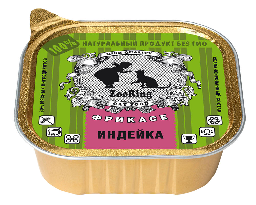 Мясо и субпродукты не менее - 80% (в том числе индейка - минимум 14%), таурин, клетчатка, витамины (А - не менее 180 МЕ, Е - не менее 0,5 мг, Д3 - не менее 0,6 мкг), микроэлементы (цинк, йод, марганец), антиоксиданты.