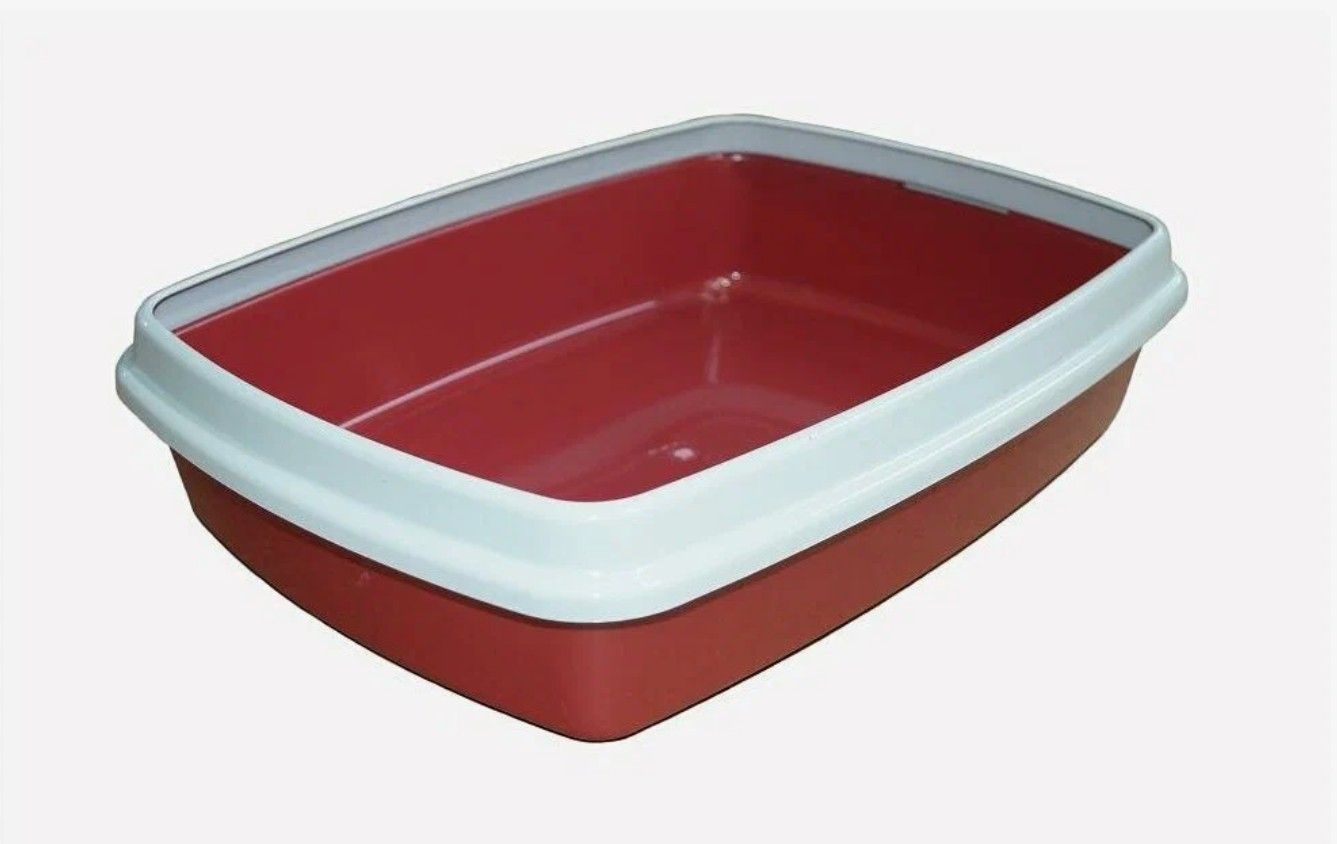 Глубокий туалет для кошек с бортиком (рамкой), которая препятствует высыпанию наполнителя.